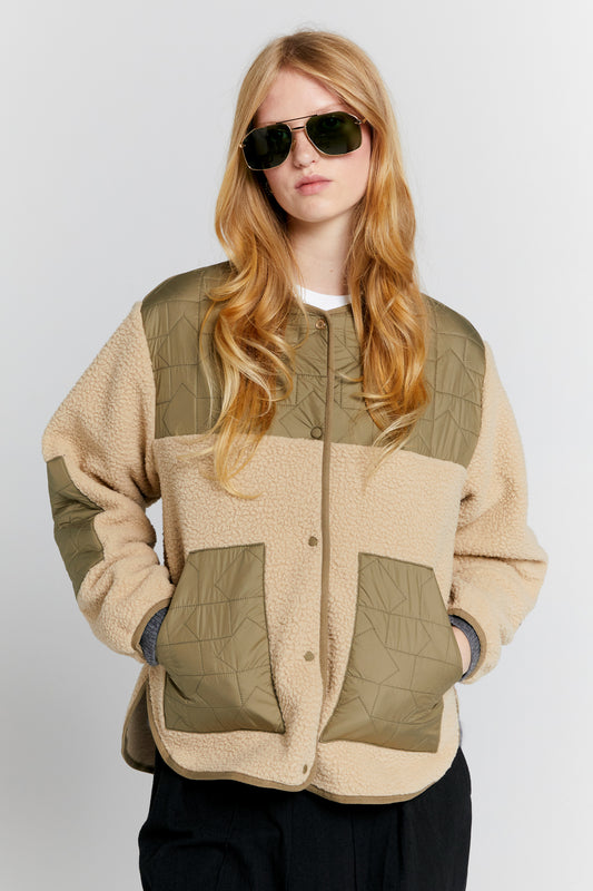 Gaia Long Sleeve Smocked Blouse Macadamia Multi/Green Smocking