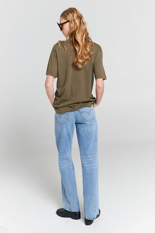Embroidered Runaway Girl Classic Organic Cotton T-Shirt Hunter Green