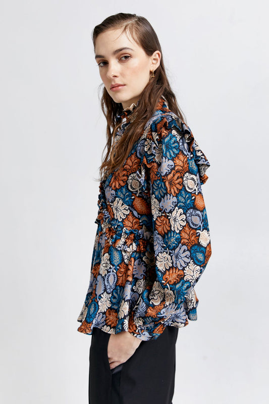 Floret Ruffle Shirt Blue