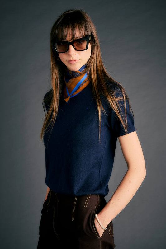 Fleur Cashmere T-Shirt Navy