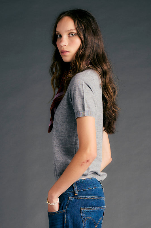 Fleur Cashmere T-Shirt Grey Marle