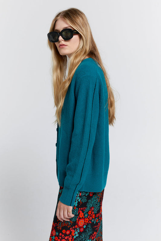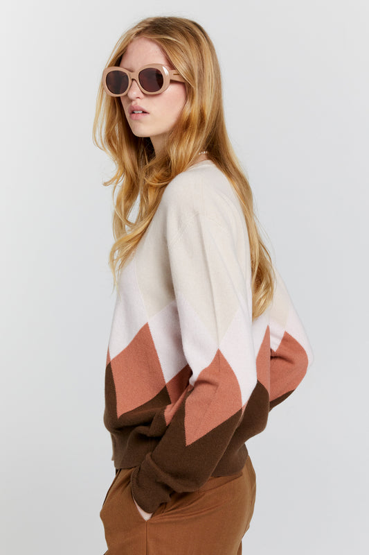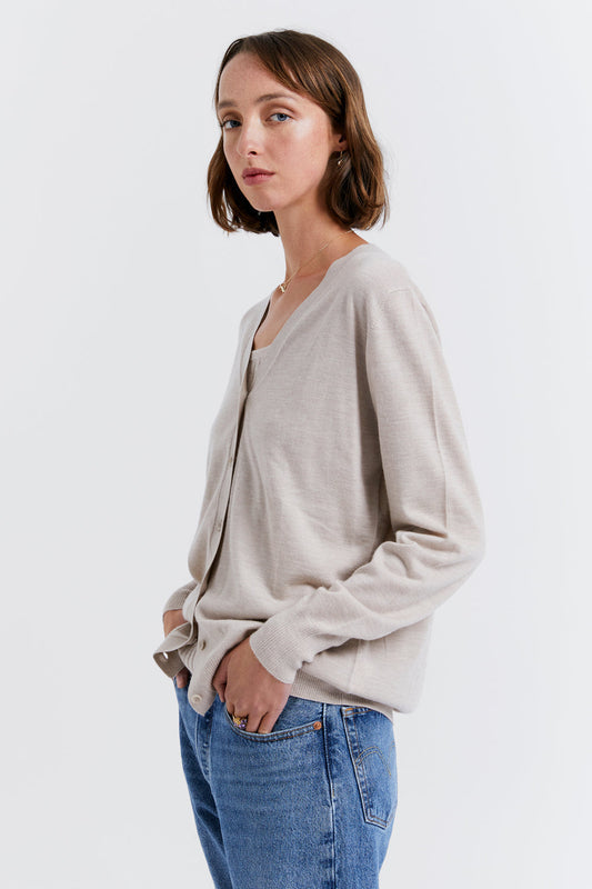 Bessie Cashmere Cardigan Black with Cream Stripe