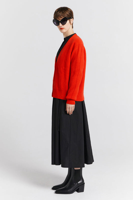 Bessie Cashmere Cardigan Black with Rust Stripe