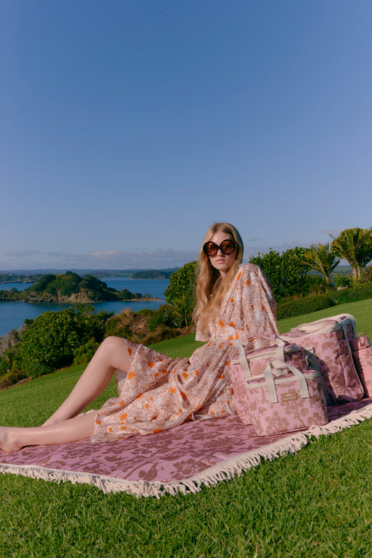 Small Tumbler with Gold Drip Rim Speckled Peach