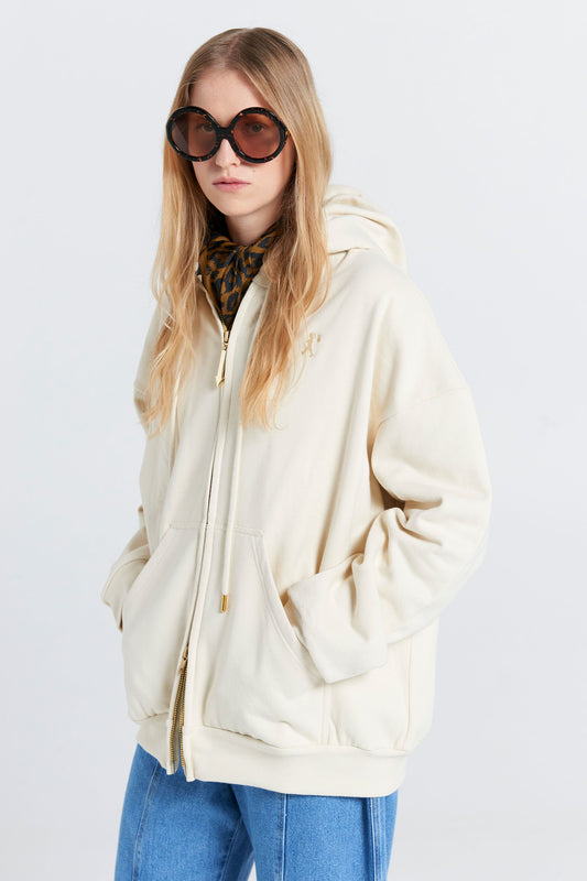 Runaway Scrawl Zip-Up Sweatshirt Ecru