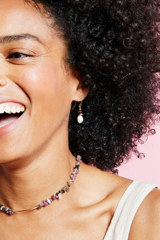 Gemstone Chip Earring with Gold-Filled Bar Hook Tourmaline