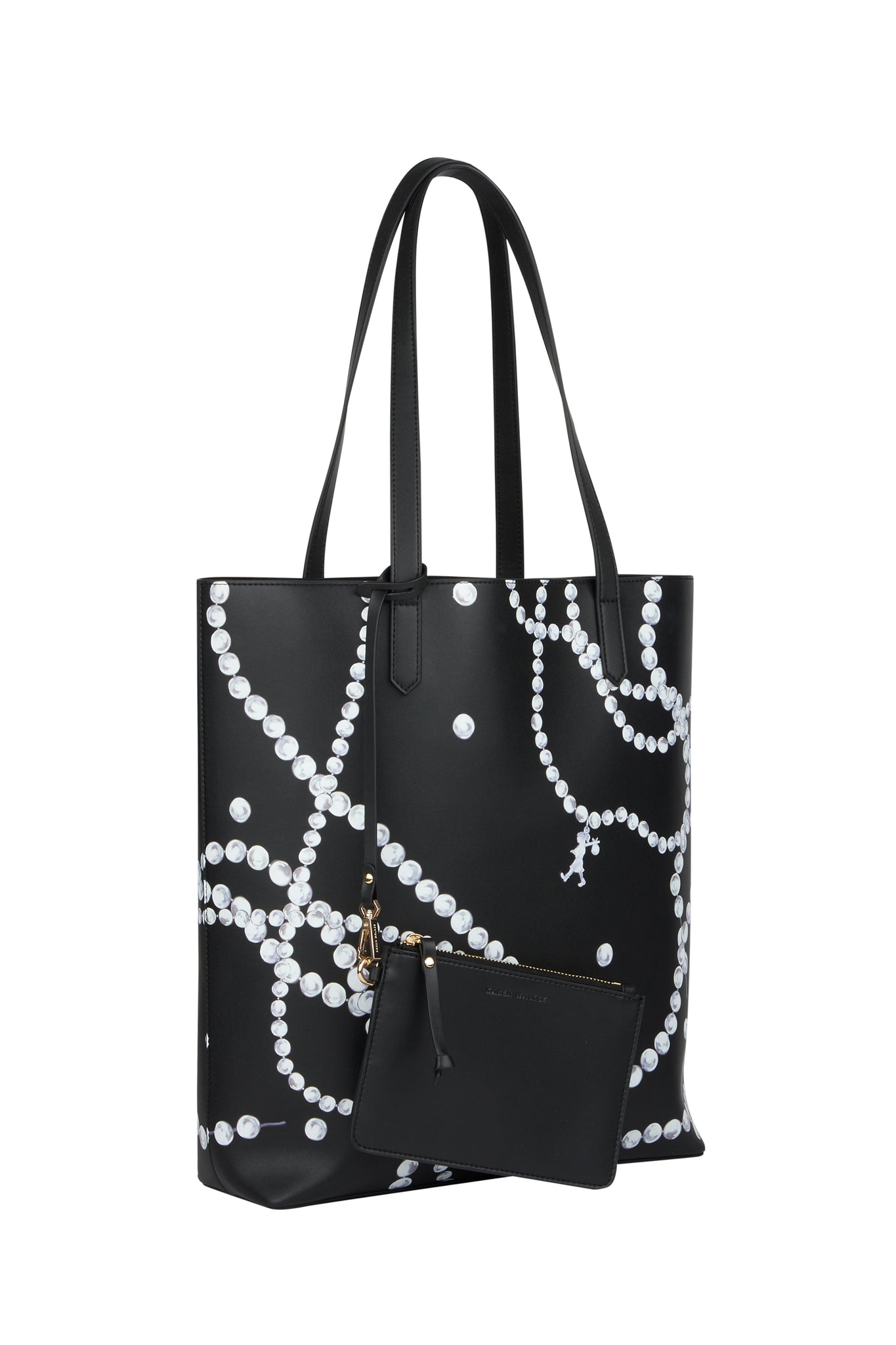 The Runaway Pearls Tote reinvents the Everyday Tote in sleek microfibre, adorned with the signature pearls print. Spacious and sturdy with double handles, it holds everything you need while maintaining a sleek, polished look.