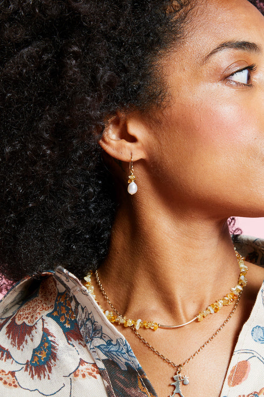 Gemstone Chip Earring with Gold-Filled Bar Hook Citrine