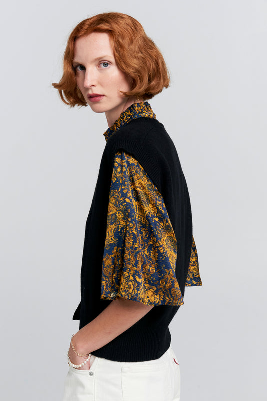 Bessie Cashmere Cardigan Black with Cream Stripe