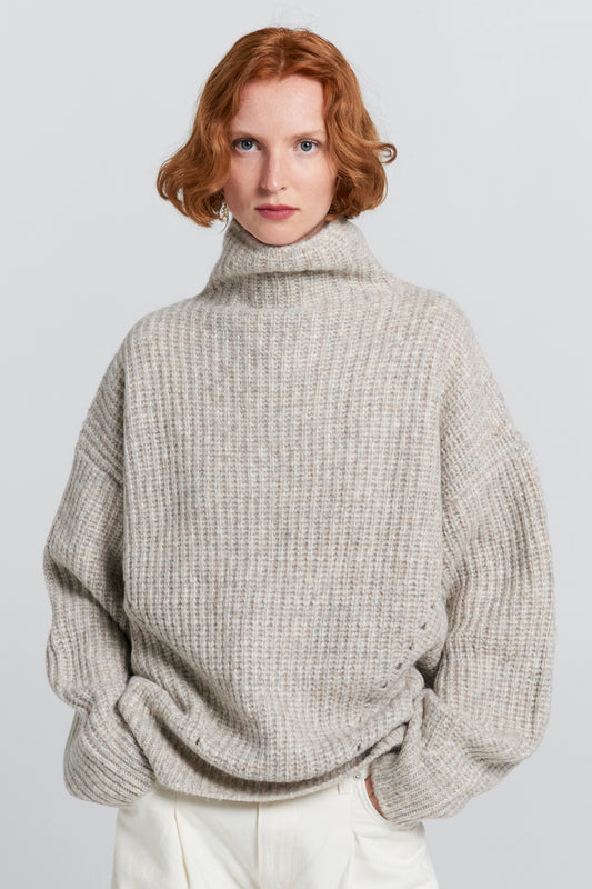Carmen Oversized Turtleneck Sweater Stone Marle