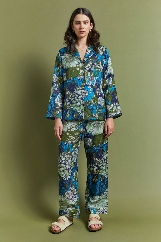 Ornamental Floral Boxer PJ Set Cerulean Blue
