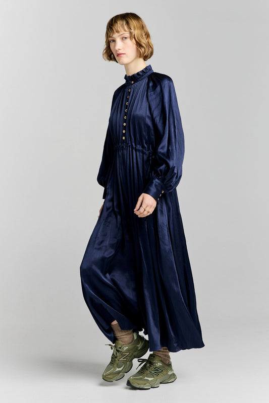 Theia Smocked Mini Dress Navy/Navy Smocking