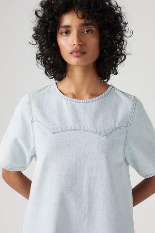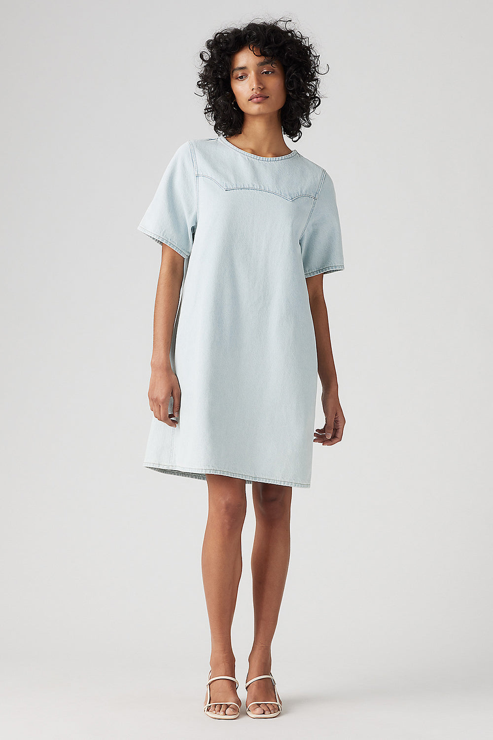 Your favourite denim meets a classic T-shirt dress design. Levi's® Denim Tee Dress was cut with a relaxed fit and features yoke detailing.
