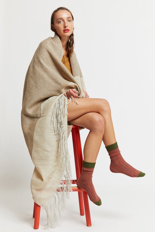This delightfully soft blanket/scarf drapes beautifully and has generous fringing at both ends. Its softness and large size means it’s perfect for fireside comfort, couch cosiness or as a fabulous wrap with any outfit.