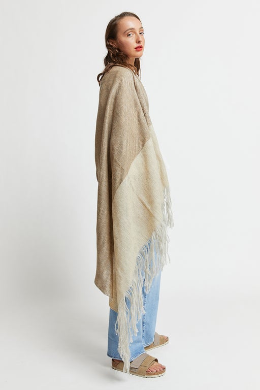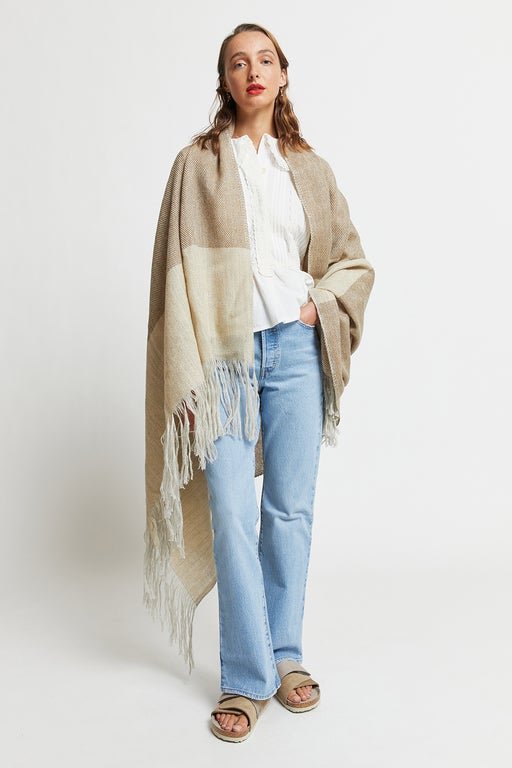 Stansborough Wool Blanket Scarf Light Beige/Dark Beige